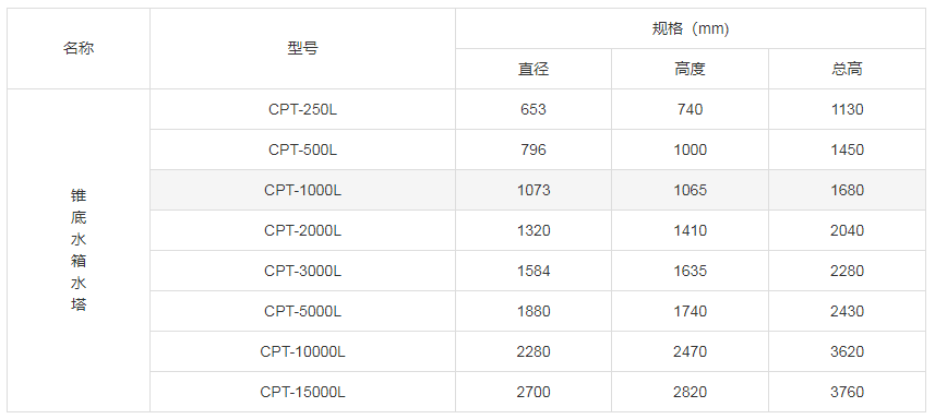CPT锥底水箱参数表