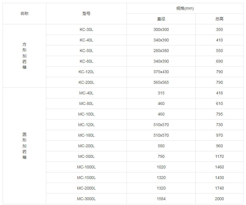 加药箱规格参数表