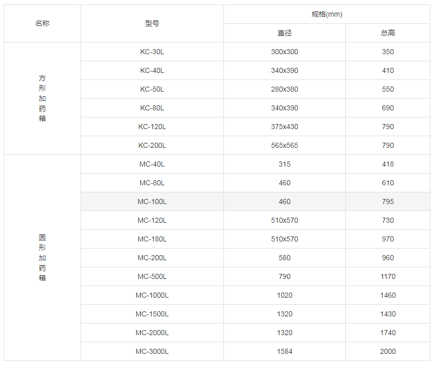 加药箱规格参数表