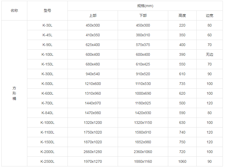 方形桶规格参数表